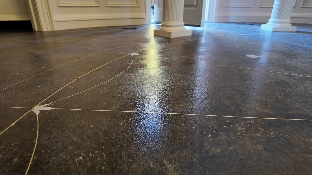 The travertine floor had high lippage and it was removed by diamond. The holes were filled with special filling material. As the final stage we honed the floor and sealed with impregnating sealer.